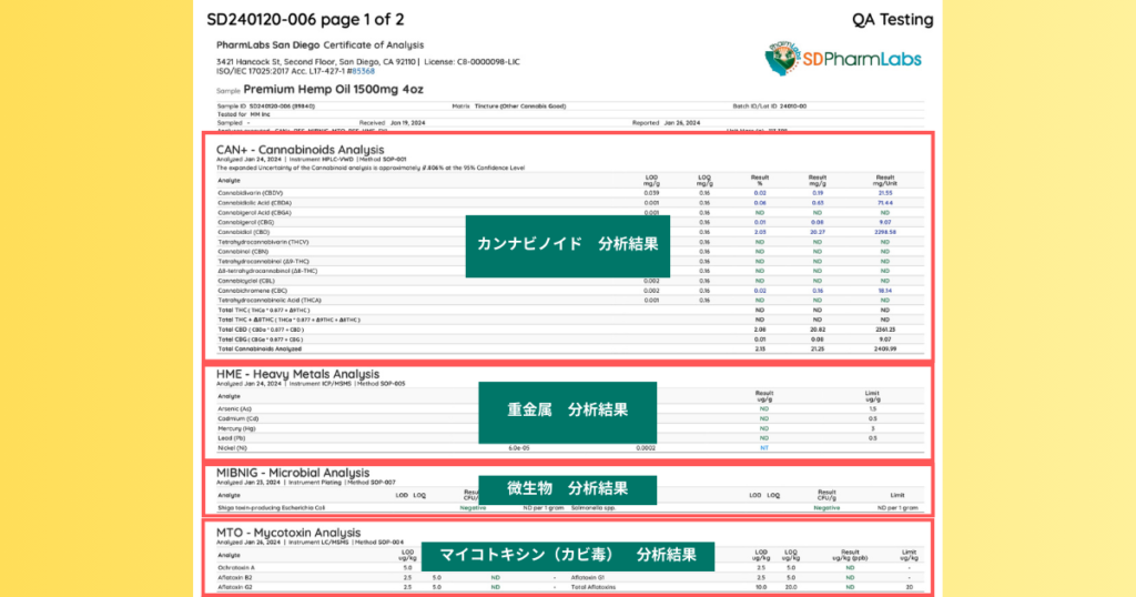 特に日本のユーザーは、「合成カンナビノイドが含まれていないこと」や「ブロードスペクラムやフルスペクトラムの表現が検証されている」といった項目に着目すべきです。