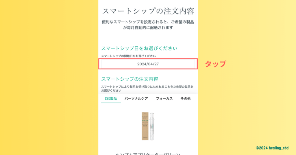 下の画像のように、スマートシップの発送日の欄をタップします。