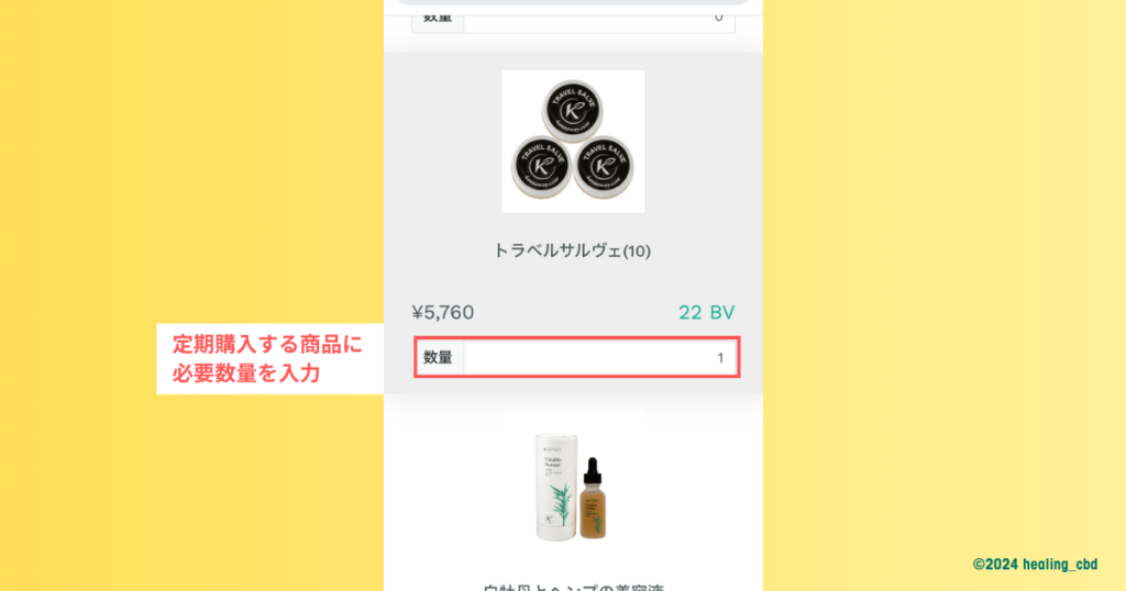 次に、定期購入を希望する製品に必要数量を入れます。
