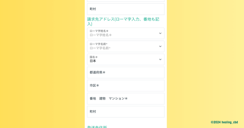 請求先アドレスをローマ字で記入します。ただし国名は「日本」と日本語で打ちしてOKです。