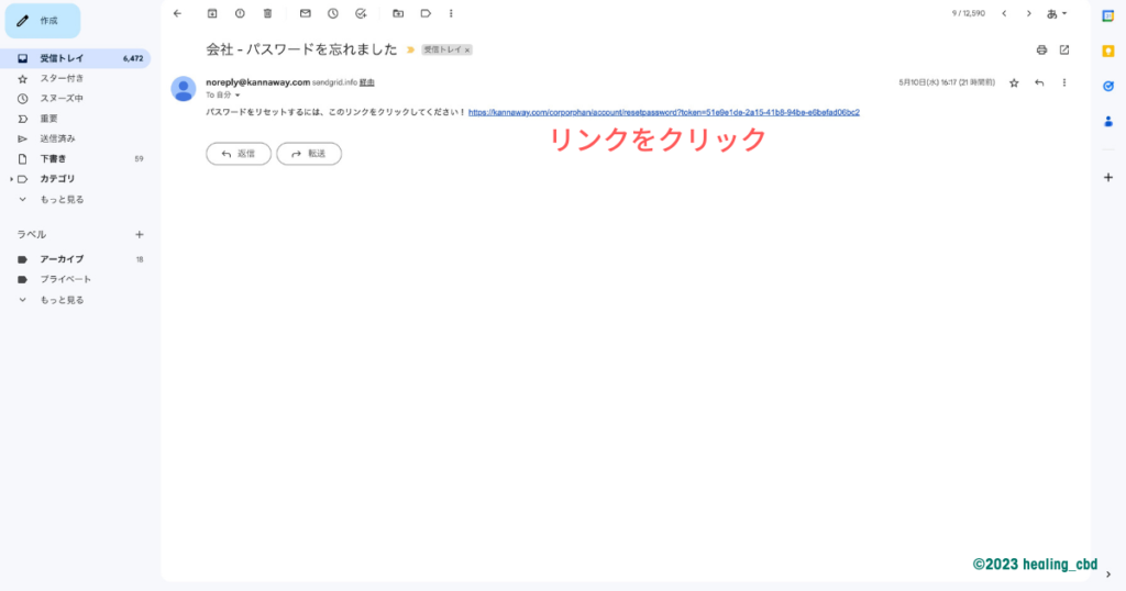 Kannawayから登録メールアドレスへ届くメールを開き、文面に添付されているURLリンクをクリックします。