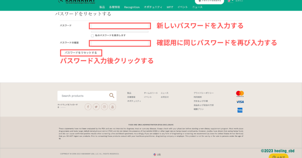 新パスワードが入力できたら「パスワードをリセットする」をクリックしましょう。これで旧パスワードのリセットと、新パスワードの登録が、同時に完了します。