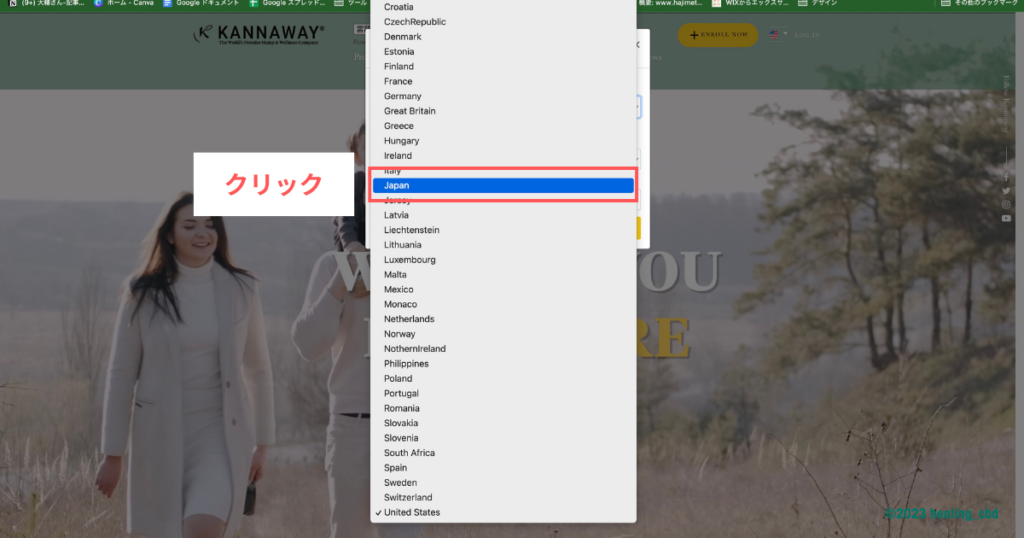 Kannawayのホームページは、全世界で閲覧されています。ホームページを閲覧する際に、国を日本に選択する必要があります。