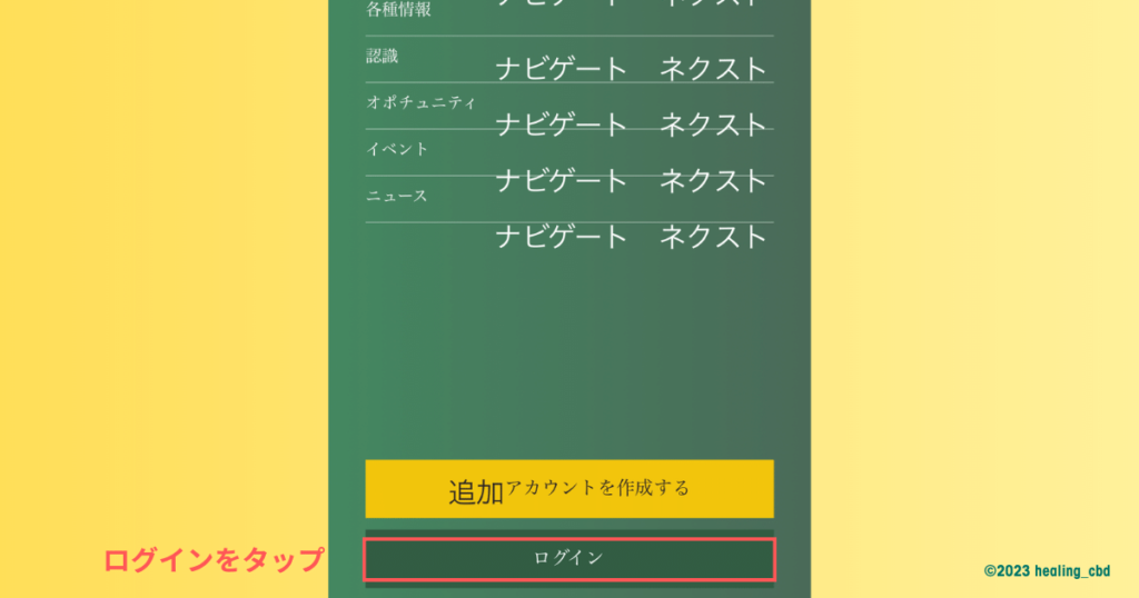 画面下部に「ログイン」というボタンが表示されるのでタップします。