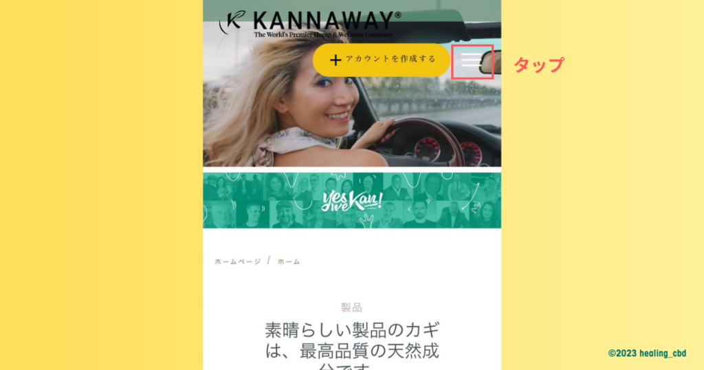 この記事では、スマホでKannawayのホームページへログインする方法を解説しています。